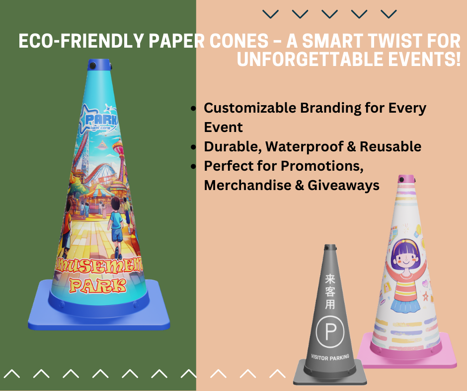 Our groundbreaking paper cone is the first of its kind, crafted using waterproof paper to deliver unparalleled durability. Its paper-based construction allows for custom printing, enabling businesses to showcase their favorite designs or branding directly on the cone. Ideal for corporate promotions, these eco-friendly paper cones are not only practical but also environmentally responsible, earning widespread popularity in Japan.